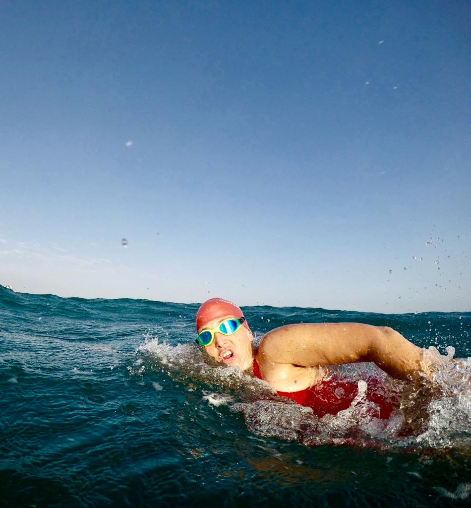 "לכבוד גיל 40, החלטתי שאני נותנת לעצמי מתנה: משחה של 44 ק"מ מגבעת אולגה לתל אביב במשך 16 וחצי שעות, בתנאים קיצוניים של קור. רק חיכיתי שהיום יפציע והשמש תעלה אבל קהילת השחיינים החזיקה אותי"