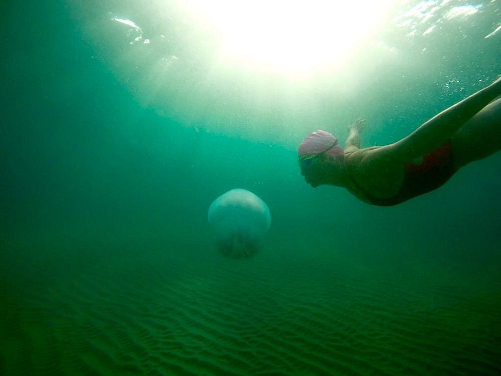 "שני אירועים משמעותיים קרו לי בחיים ששינו את התפיסה שלי לגבי תודעה ושפע. האחד הוא הסכרת של בתי ליאור והשני הוא הקורונה. בגלל הסכרת רציתי להיות יותר קרובה הביתה ובגלל הקורונה נשארתי עם משכורת של 4000 ש"ח והייתי תלויה בפרוד שלי ובאימי. ההבנה של עצמאות כלכלית לא חזקה אצל קיבוצניקים. יום אחד לקחתי את ליאור לשיעור שחיה ב'עולם המים' של אורי סלע, אמרו לי שיש קבוצה גם למבוגרים ומצאתי את עצמי שוב בבריכה, אחרי הרבה שנים. כשאורי סיפר שבעוד שמונה חודשים יש משחה של 10 ק"מ בים, החלטתי שזה יכול להיות תחביב נחמד, נדבקתי בהתלהבות שלו. הייתי בת 36 והוא לימד אותי הכול על שחייה בים. איך לעבור גלים, זרמים, ומה לעשות כשיש מדוזות מסביב. בזמן שהבריכות היו סגורות, הים פתוח ונותן תחושה של עצמאות. לכבוד גיל 40, החלטתי שאני נותנת לעצמי מתנה: משחה מגבעת אולגה לתל אביב של 44 ק"מ, זה כמו מרתון ריצה, אבל 16 וחצי שעות, בתנאים קיצוניים של קור. רק חיכיתי שהיום יפציע והשמש תעלה אבל חברים וקהילת השחיינים החזיקה אותי".