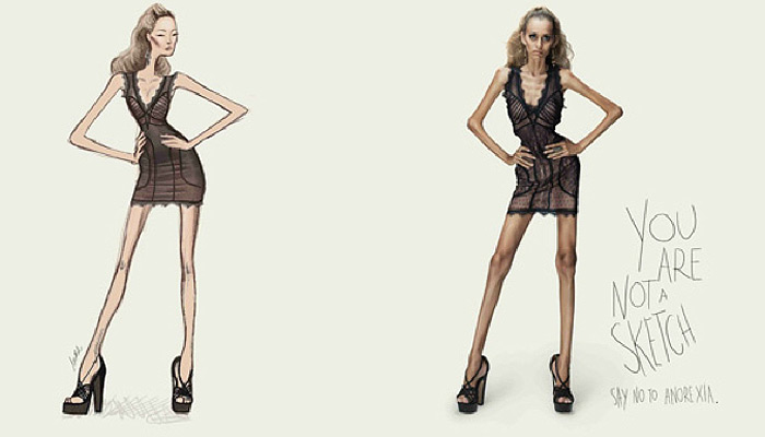 קמפיין שעלה בחודש החולף כנגד אנורקסיה והשלכותיה, מפגיש ויזואלית סקאצ'ים – איור של אופנתי של דוגמנית – עם תמונות של דוגמניות בשר ודם שעוותו כדי להיראות רזות כמו באיור. תחת הכותרת: "את לא סקאץ'", ממחישים כמה הדקות של הדוגמניות עושה אותן דקות לא פחות מהאיור, ושבאיור זה יפה אבל במציאות זה רחוק מלהיות חינני.