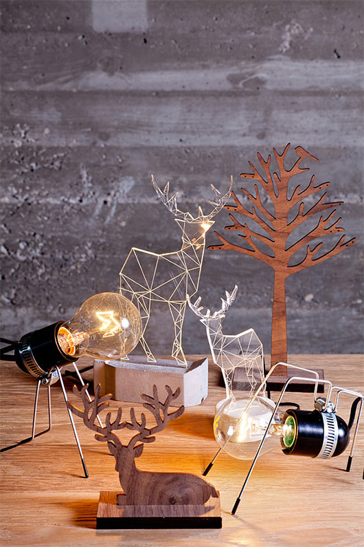 גופי תאורה בצורת חרקים, 99.90 שקלים ליחידה. אנימי # גופי תאורה בצורת איילים, גדול, 250 שקלים; קטן, 190 שקלים. עמית סטורלזי # מתלים לתכשיטים מעץ, בצורת אייל, 95 שקלים; בצורת עץ, 130 שקלים. שלומית אופיר