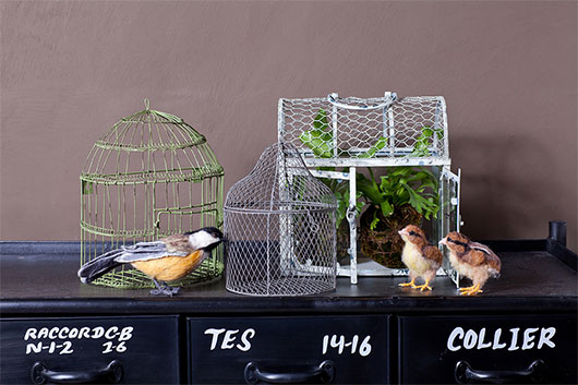 גרין האוס ממתכת, 298 שקלים; כלובי ציפורים ממתכת, אפור, 85 שקלים; ירוק, 120 שקלים. פלורליס # ציפור בטכניקת ליבוד, 300 שקלים; אפרוחים בטכניקת ליבוד, 310 שקלים ליחידה. אמנות הליבוד