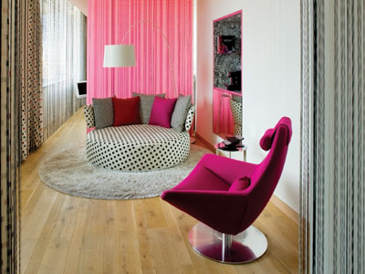 הסוויטה מאופיינת בשחור ולבן כצבעי בסיס ובוורוד פוקסיה