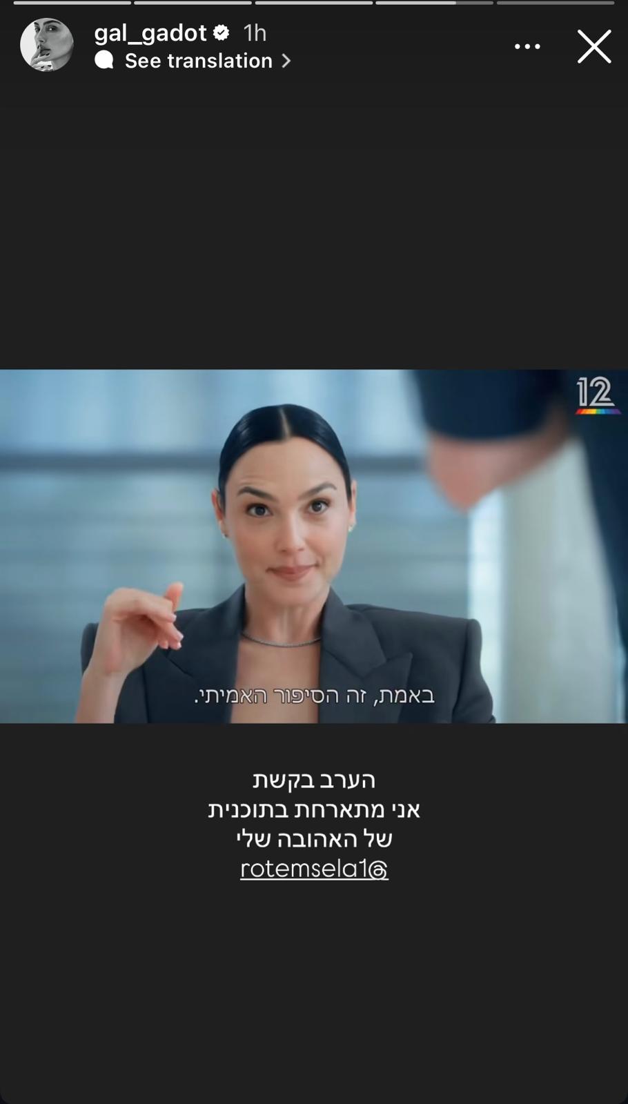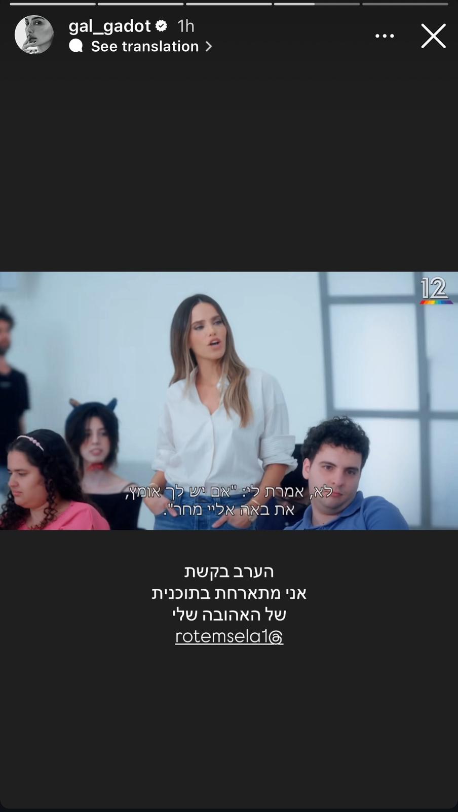 רותם סלע בפרק הפתיחה של "ראיון מיוחד" | צילום מסך: אינסטגרם galgadot@