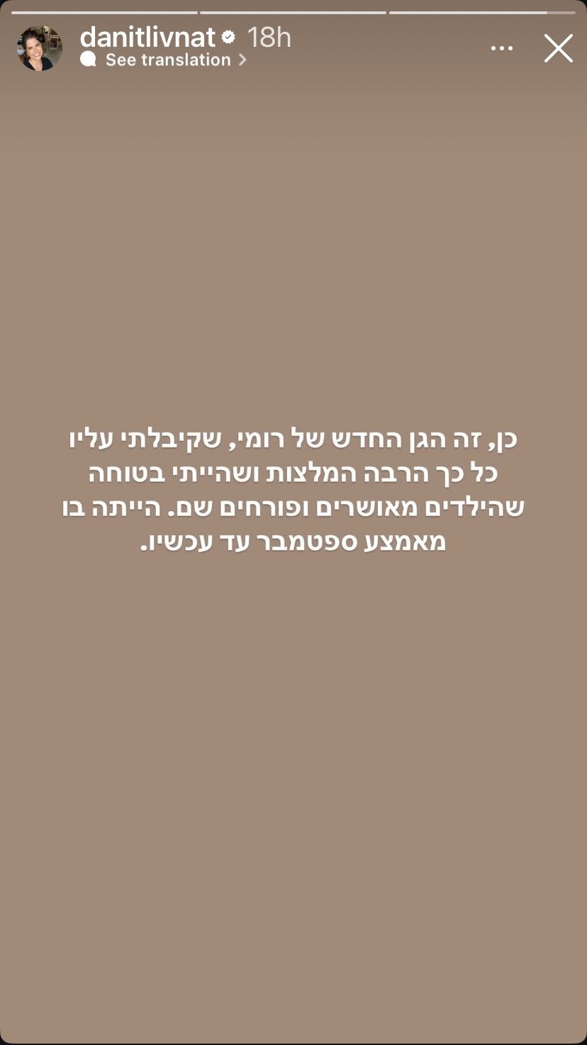 "כן, זה הגן החדש של רומי", כתבה ליבנת בסטורי העוקב, "שקיבלתי עליו כל כך הרבה המלצות ושהייתי בטוחה שהילדים מאושרים ופורחים שם. רומי הייתה בו מאמצע ספטמבר עד עכשיו. לא מאמינה שאנחנו בסרט הזה", היא המשיכה בסטורי נוסף, "אבל חייבת בדחיפות מטפלת לרומי שלנו". בחשיפת הפרשה, בעלת הגן תועדה כשהיא תופסת תינוק ומושכת אותו באגרסיביות מהלול, ומפעילה כוח נגד פעוטות כדי שלא יקומו מהמיטה. מדובר בסיוט הכי גדול של כל הורה – ליבנו עם דנית ועם כל ההורים שילדיהם נפלו קורבן לזוועות ולמקרי אלימות מזעזעים בגני ילדים.