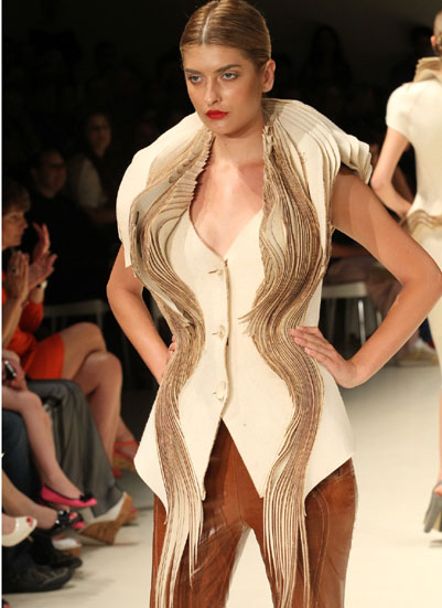 הדיאלוג שבין הדרישה לעיצוב אופנה מסחרי תוך התחשבות בשיקולים כלכליים ושיווקיים, לבין התשוקה ליצירתיות, חדשנות והצורך למרוד במוסכמות, בלטו לא רק בשבוע ההוט קוטור שהושק בתחילת שבוע זה בפאריז, אלא גם בתצוגת הבוגרים של שנקר. בתצוגה, שנערכה השבוע בקיבוץ געש (2.7), הצעידו 33 בוגרי מחזור 2012 על המסלול את פרוייקטי הגמר שלהם בעיצוב אופנה מול קהל רב ואוהד של עיתונאים, אנשי תעשיית האופנה, מרצים, תורמים, וכמובן שגם מול ענייהן הדומעות של הוריהם הגאים.