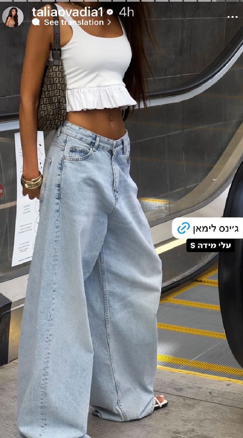 טליה עובדיה עלתה על ג'ינס שהוא היציאה של הקיץ: מכנסי פיל מגה רחבים שמעניקים לוק של סקייטרית סופר קולית. גם העוקבות שלה השתגעו ממנו ועכשיו תראו אותו בכל מקום