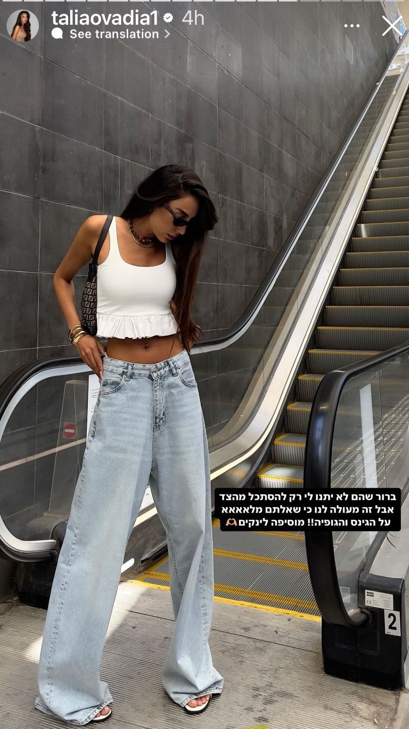 מפעם לפעם לטליה עובדיה יש יצאות סטייל ואנחנו מתות על זה. הפעם זוכת "האח הגדול" עלתה על אחת מגזרות הג'ינס הכי חמות העונה: ג'ינס שמזכיר גזרת בויפרנד או באגי, אבל רחב בהגזמה ובגוון תכלת-תיכון ושיגעה את העוקבות שלה שממש ביקשו לדעת מאיפה הג'ינס.