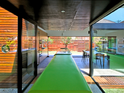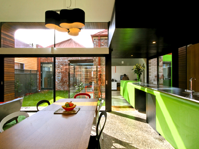 מבט מהחצר אל המטבח.צילום: Kevin Hui
