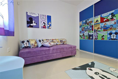 שני חדרי הילדים עוצבו האחד לילד צעיר והשני למתבגר. הנושא של החדר הצעיר הוא סרטי מיקי מאוס. הדפסת קומיקס על דלתות הארון, תמונת קיר, כריות מיטה ושטיח רצפה מרכזי מאריחים – בכולם מצויר מיקי מאוס.