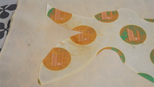 2. ודאו ששטח הפנים של המגהץ נקי וחממו אותו לחום מקסימלי (210 מעלות), בלי פליטת אדים. הצמידו את התמונה הגזורה לבד, כשפניה כלפי מטה.