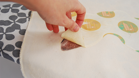 4. תנו למדבקה להתקרר, מתחו את הבד באלכסון והסירו את המדבקה בעדינות וללא הפסקות.
