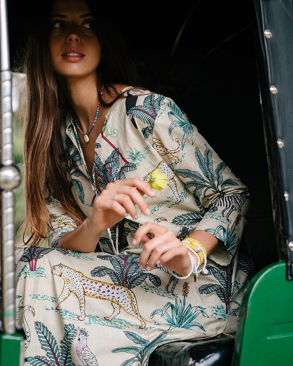 קולקציית האביב של גלביה לוקחת אותנו היישר לג'ונגלים של סרי לנקה – בלי דרכון, אבל עם הרבה סטייל. בדים דקיקים ונושמים, גזרות נינוחות והדפסים משגעים בעבודת יד יוצרים וייב מדויק של חופשה בריזורט מפנק. החדשות הטובות? חנות פופ-אפ של המותג נפתחה בקניון רמת אביב ותפעל שם עד אחרי החג. בקולקציה תמצאו חלוקי חוף, חולצות רקומות, קימונוז ממשי עם הדפסים צבעוניים ומלאי נוכחות, וגם שמלות מידי א-סימטריות קלילות. ההתאהבות שלנו? שמלת זנזיבר – בהדפס ג'ונגל פראי מבד פשתן-כותנה שעושה חשק לארוז מזוודה ולברוח לאי בודד.