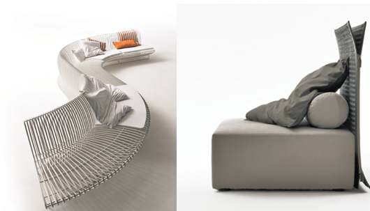מימין: כורסת טאלנטה בונסינה. משמאל: ספת אליפסס