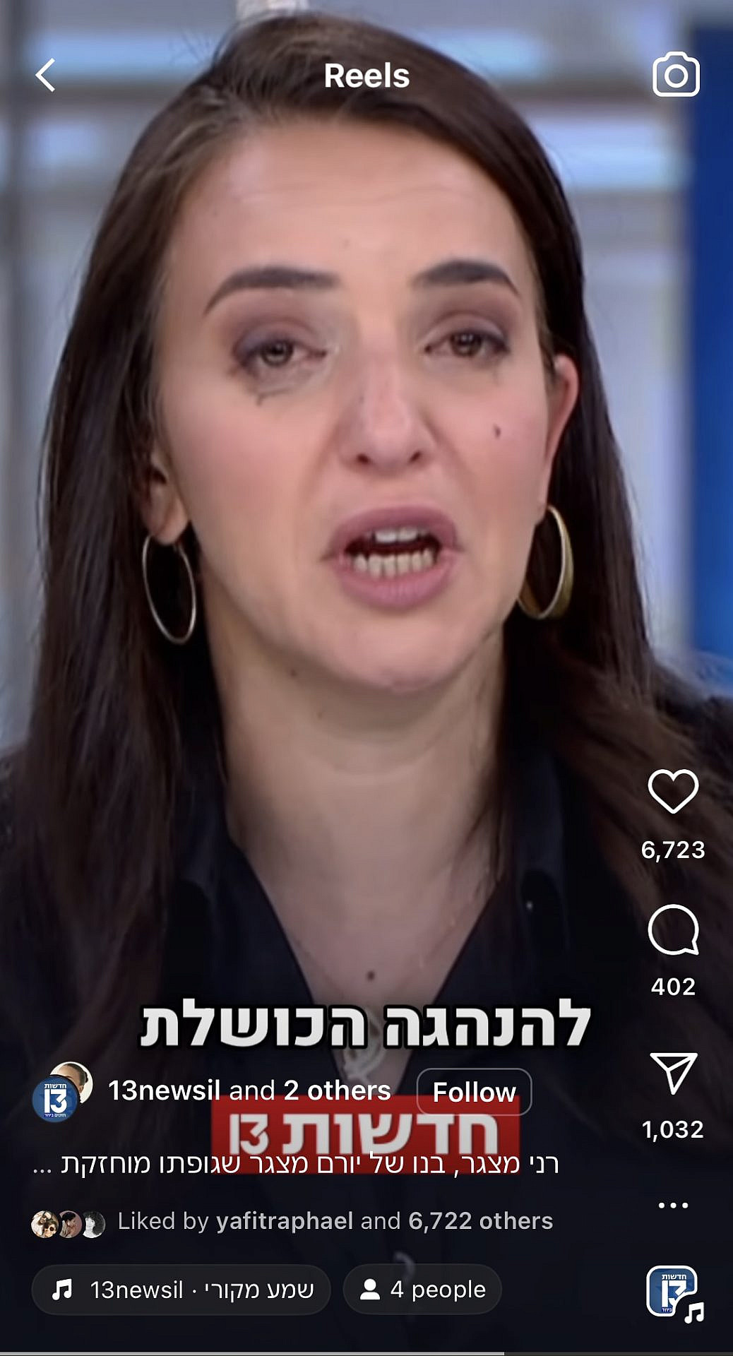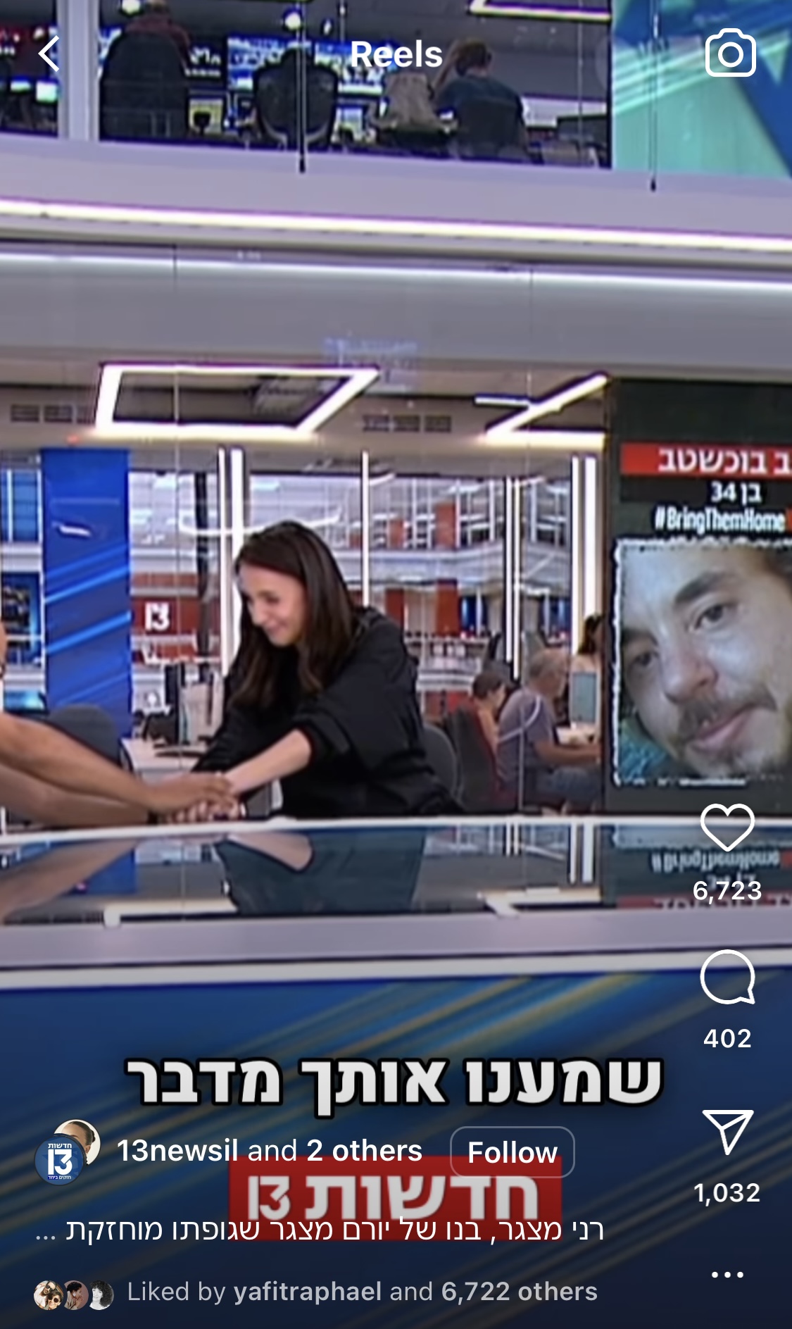 "זה ההבדל בין האזרחים להנהגה הכושלת שלנו", אמרה אהריש תוך כדי שהיא מוצפת בדמעות, והעבירה את השידור לרגע אחד לקולגה שלה. אהריש אחזה את ידו של רני והרכינה ראש. התגובה שלה הטביעה לנו את הלב בדמעות. 124 חטופות וחטופים, חלקם עדיין בחיים, ממשיכים להיות מוחזקים כבני ערובה בעזה כבר שמונה חודשים. זה לא הגיוני, מדובר במחדל ובהפקרות מתמשכת. אפשר היה להציל את חייו של יורם מצגר, כמו גם את חייהם של עמירם קופר, חיים פרי ונדב פופלוול. זה בלתי נסלח.