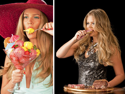 ולא, אני גם לא מעריכה את זה שדוחפים לי בכל הזדמנות אימג'ים של נשים אוכלות או בולסות ספגטי בולונז או סטייק מדמם. אני גם לא מעריכה את זה שכמעט מכריחים אותי לחשוב שאישה שנראית כמו כלב שרפיי וכל גופה מלא קפלים היא-היא מודל ראוי ליופי. היא לא, בדיוק כשם שדוגמנית שעצמותיה מאיימות להוציא לי עין היא לא מודל ראוי ליופי.