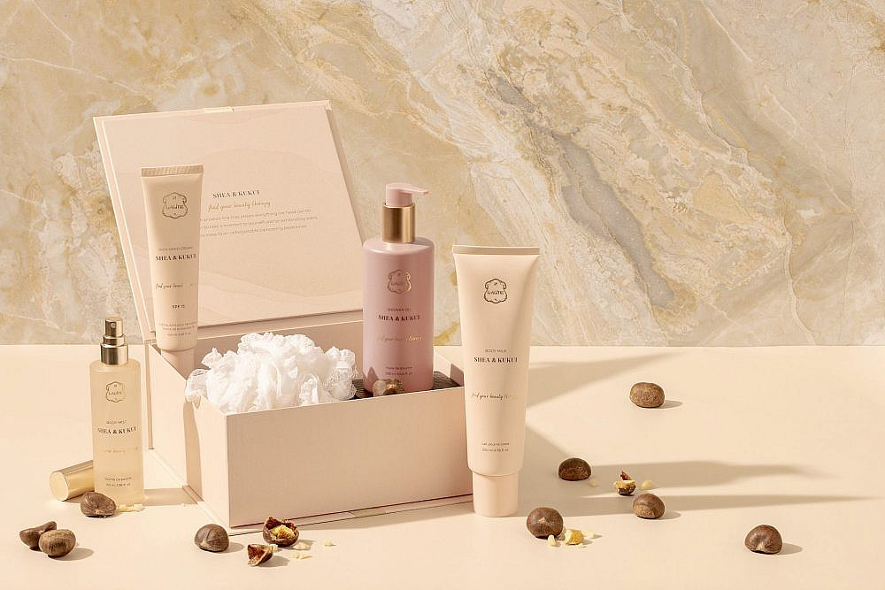 ללין. מארז קרם גוף, חמאת גוף, קרם ידיים ומיסט לגוף על בסיס חמאת שיאה. 229 ש"ח | צילום: עידן מלכה