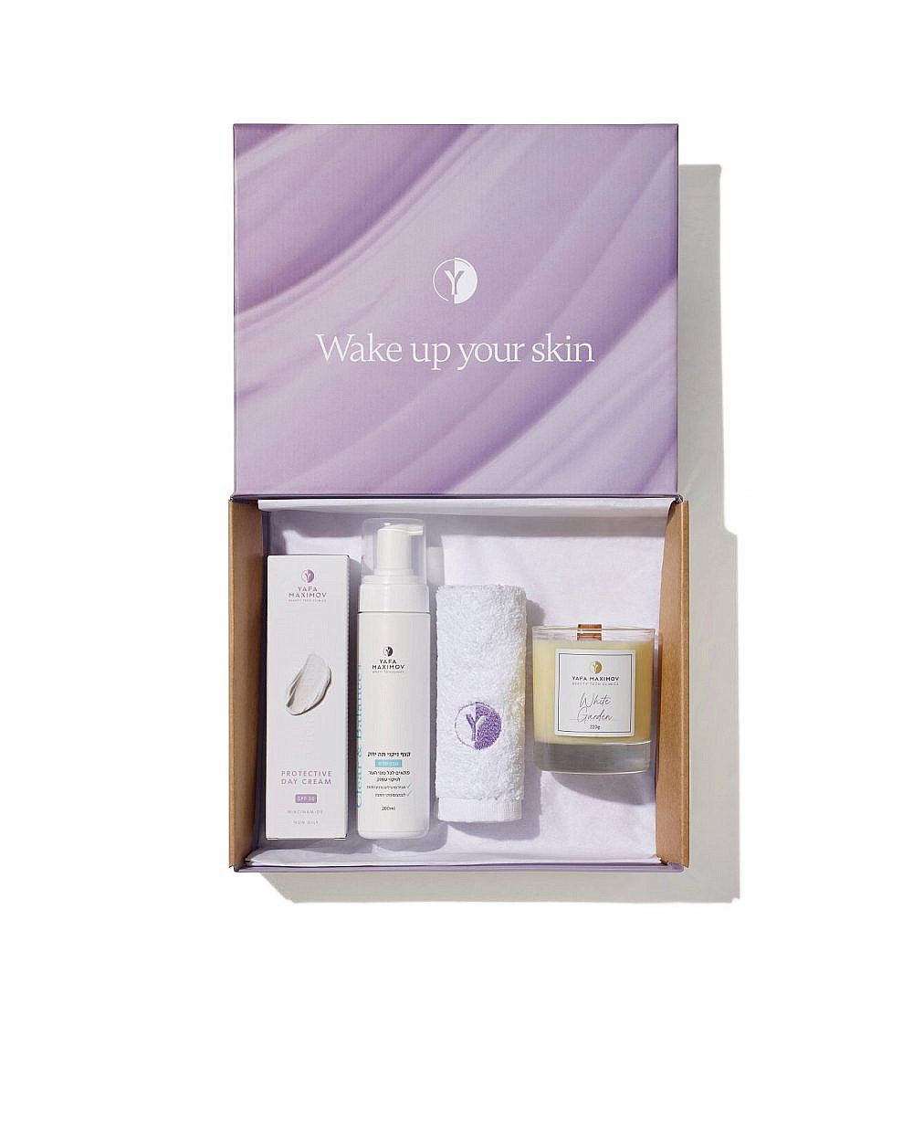 יפה מקסימוב. מארז של קרם לחות, תכשיר ניקוי, מגבת ונר. 295 ש"ח | צילום: דן פרץ