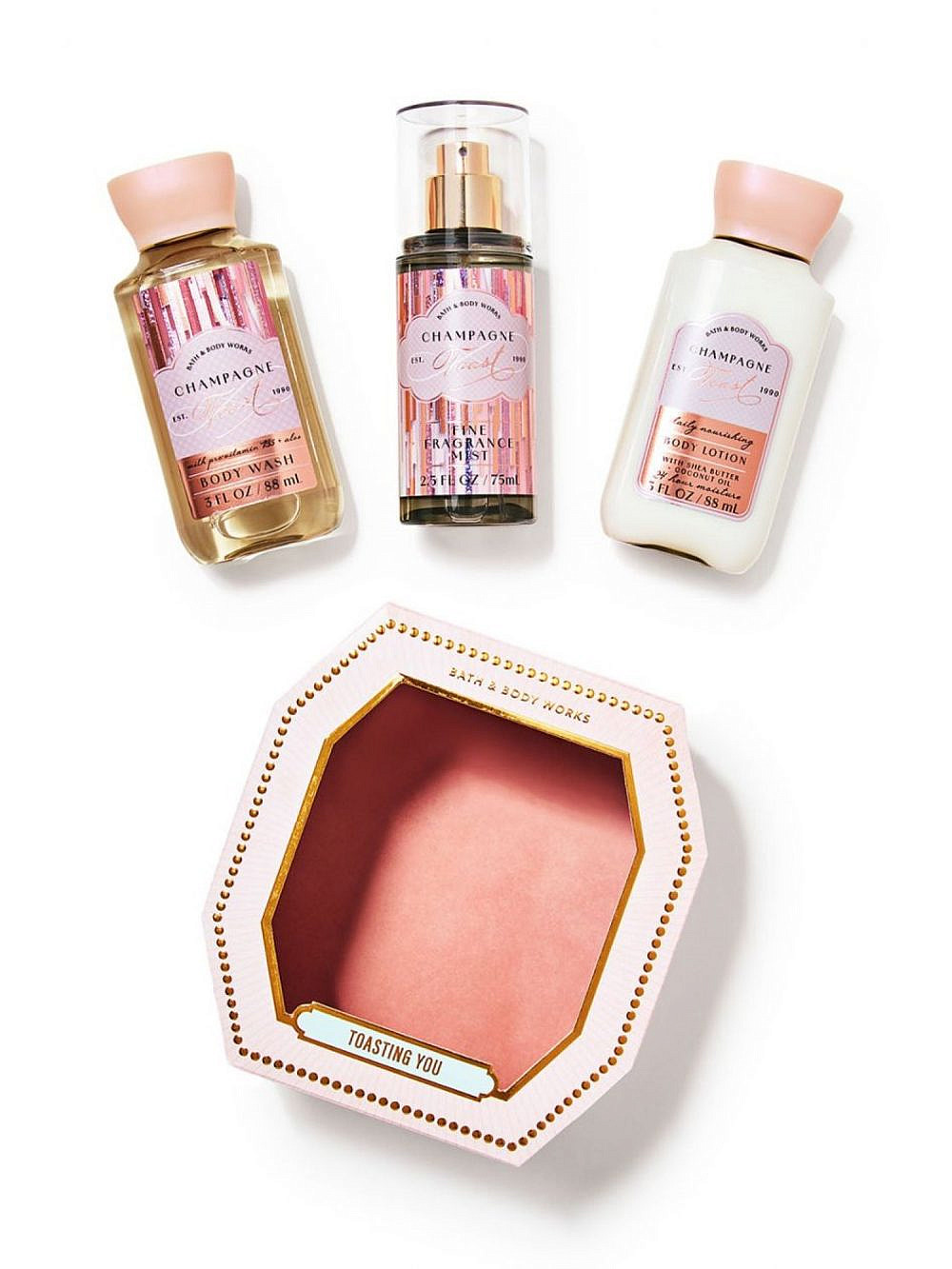 Bath & Body Works. מארז שמפניה של סבון רחצה, קרם גוף ותרסיס מיסט 99.90 ש"ח | צילום: יח"צ