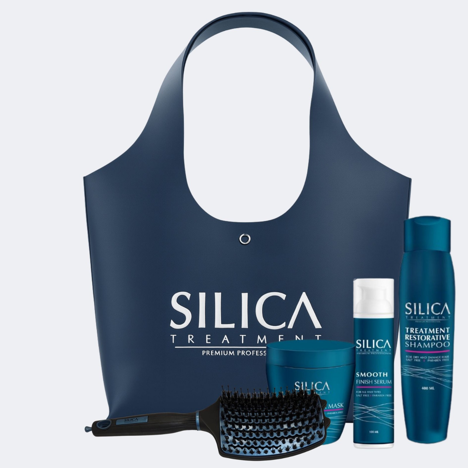 SILICA. מארז לטיפוח ושיקום השיער הכולל שמפו, מסכה, סרום, מברשת ותיק. 350 ש"ח (צילום: יח"צ)
