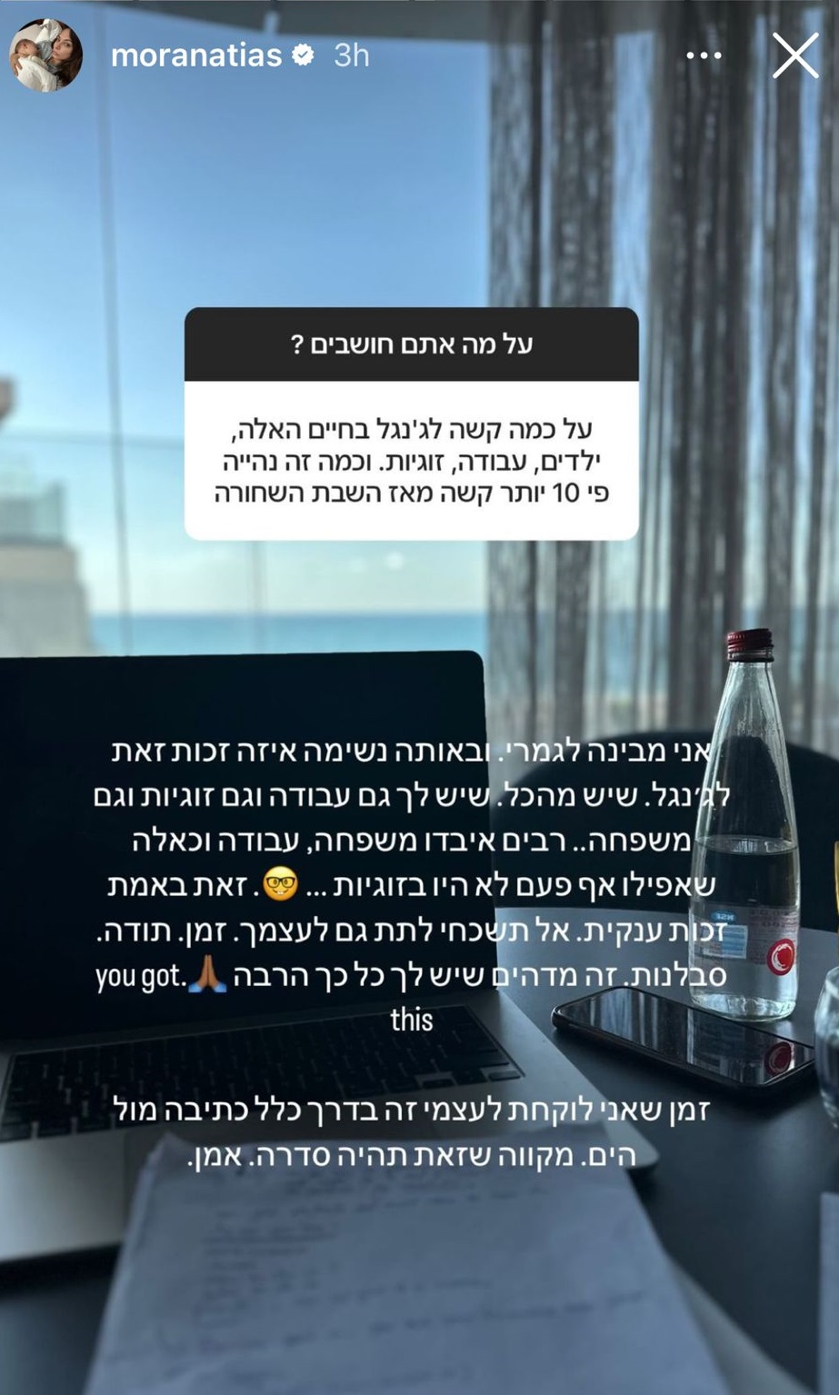 נכון שאוגוסט הקשוח הוא באמת מאתגר ומכריח אותנו לג'נגל בין ילדים, עבודה ומלחמה, אבל אטיאס מזכירה לנו להודות על זה שיש בין מה לג'נגל: קמתן בבוקר ויש לכן ילדים, עבודה, בית וזוגיות – שפר עליכן מזלכן.