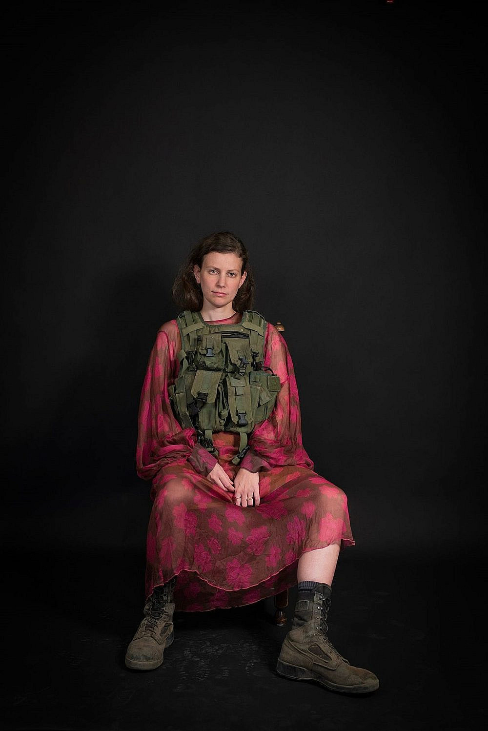 ואז, ברגע אחד, במעבר חד, חיצוני וגם מחשבתי – פתאום אני על מדים ירוקים, רחבים וארוכים, עם אפוד קרמי שמוחץ את החזה. נעליים גבוהות, והדבר היחיד שמבצבץ, אלה האצבעות עם הלק ג'ל. הפנים מרוחות באבק ובחול. את "ערומה" מתכשיטי זהב אחרי שאת מקלפת מעצמך את הצמידים ומרימה נשק במקומם. השיער אסוף לגולגול נמוך, מעליו קסדה כבדה ולוחצת.