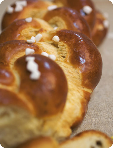 6. מברישים בביצה טרופה ומשהים שעה להתפחה. מברישים שוב ביצה טרופה, ומפזרים מעל גבישי סוכר.