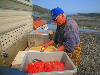 בשעות השפל בני אדם דגים את דגי הסלמון