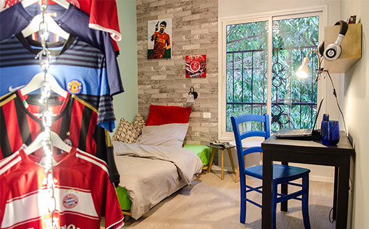 במסגרת פרויקט "צו 8 למעצבות" הגיעו הדר מזור, ניצה אלקנתי ורינת קליין לחדר של לוחם בחטיבת הנח"ל שנפצע ברגלו חודשיים לפני מועד שחרורו ושילבו בעיצוב את אוסף חולצות הכדורגל שלו