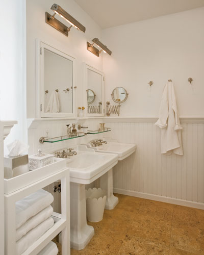 חדר האמבטיה עוצב בסגנון המאה ה-19. מעל הכיור והמראה הותקנו גופי תאורה המיועדים להארת ציורים. הצורה הגיאומטרית הישרה שלהם והעמדתם מעל הכיורים מעניקות לחלל חלוקה סימטרית ומראה נוסטלגי