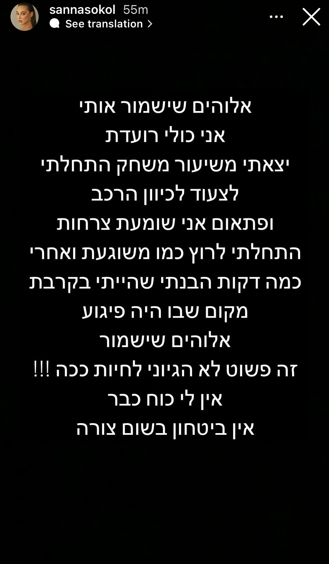 סנה סוקול בעדות מצמררת על הפיגוע בת"א: "רצתי כמו משוגעת"