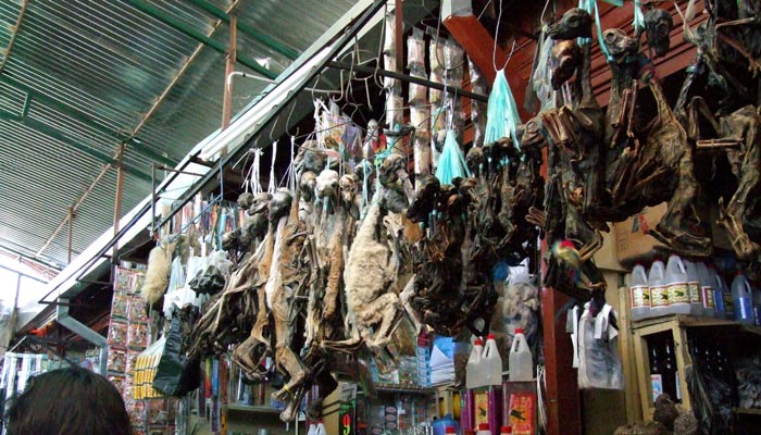 שוק המכשפות (Mercado de las Brujas) המפורסם של לה פאס (La Paz), בירת בוליביה, הוא גרסה תיירותית חיוורת לאגף המנחות והקורבנות המסחרר של שוק לה קאנצ'ה. המגוון מרתק: עופות דורסים מתים תלויים על ווִים, נרות, שריוני ארמדיל, נוצות צבעוניות, שיקויים משיקויים שונים, גולגולות למה ומבחר גדול של עוברי למה ועוברי גדיים מיובשים או משומרים, שאותם נהוג לקבור מתחת ליסודות של בית חדש, למזל.