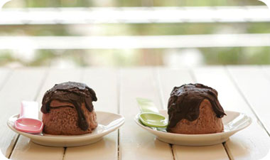 - מוציאים את הקינוחים מההקפאה, טובלים במים רותחים, הופכים על צלחת ומחלצים את הקינוח.
