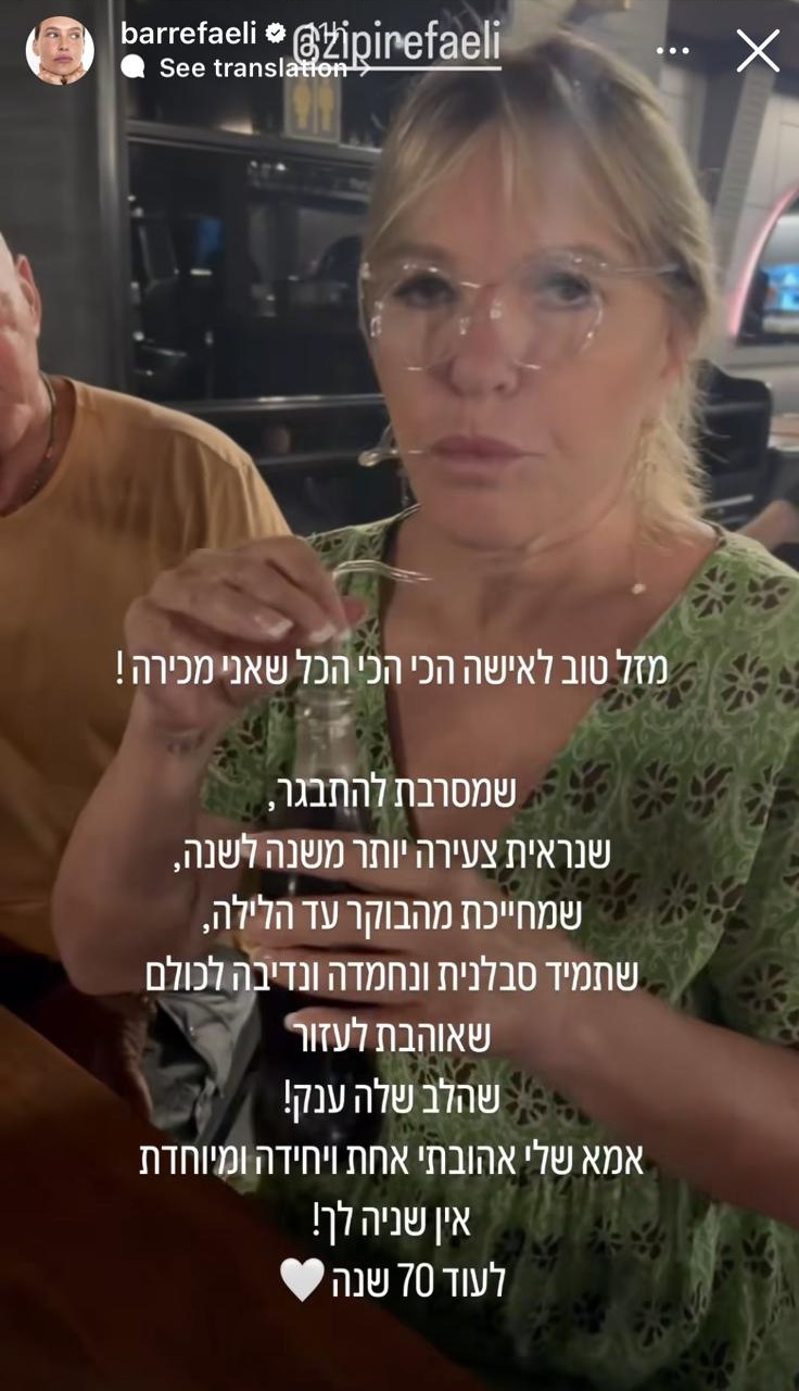 יום ההולדת העגול עורר רגשות רבים בקרב בני משפחתה, חבריה וחברותיה, שבירכו אותה ברשתות החברתיות. בין המברכות – ניקול ראידמן, ששיתפה תמונת עבר רותחת של רפאלי בשחור-לבן, וכמובן, בר רפאלי, שכתבה לאמה בסטורי: "מזל טוב לאישה הכי הכי הכל שאני מכירה! שמסרבת להתבגר, שנראית צעירה יותר משנה לשנה, שמחייכת מהבוקר עד הלילה… אמא שלי אהובתי, אחת ויחידה! לעוד 70 שנה".