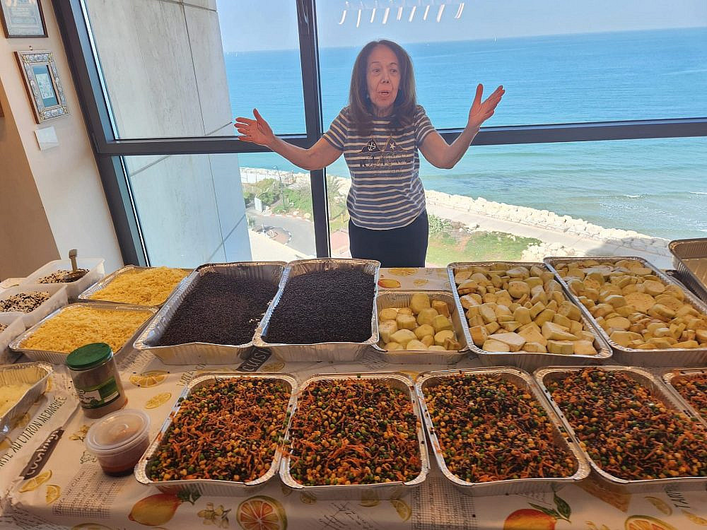 "מה שמטריד אותי בעיקר זה מה יקרה אם המעצב האיטלקי שאחראי על עיצוב הדירה שלי, יכנס לפה עכשיו. הוא יקבל התקף לב אם יראה מה עשיתי מהבית שהוא עבד כל כך קשה על עיצובו. אני גם מוטרדת מזה שהנכד שלי, רופא בן 26 שעשה עליה לארץ, ימצא כלה טובה. מי שמוטרדת מהצד הכספי זוהי הבת שלי לורן, היא באה מניו ג'רזי, והיא נרתמת מהדירה של בני שבבניין שלי. היא מבשלת לחיילים, היא פנומנלית ומכינה אוכל בינלאומי, טעים להפליא ושגם נראה טוב. גם דבורה, הבת שלי מירושלים, מבשלת – ואני מממנת הכל. לורן אומרת שבקצב הזה של ההתנדבות, הכסף שלי יגמר ושכדאי שנבקש תרומות – כדי שנוכל להמשיך להכין אוכל לחיילים לאורך זמן".
