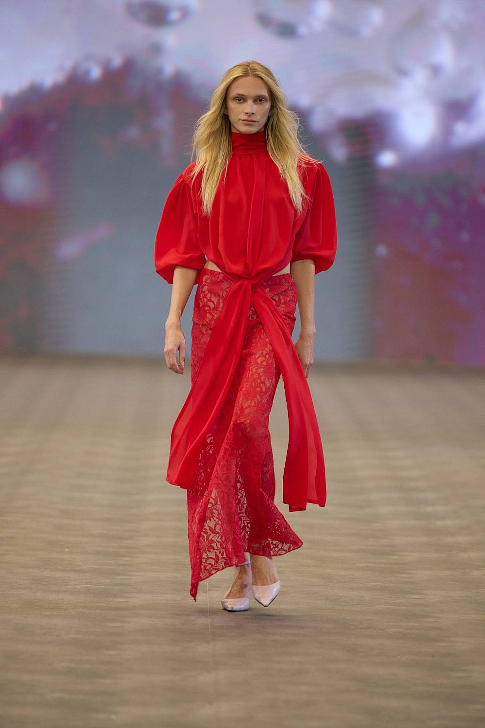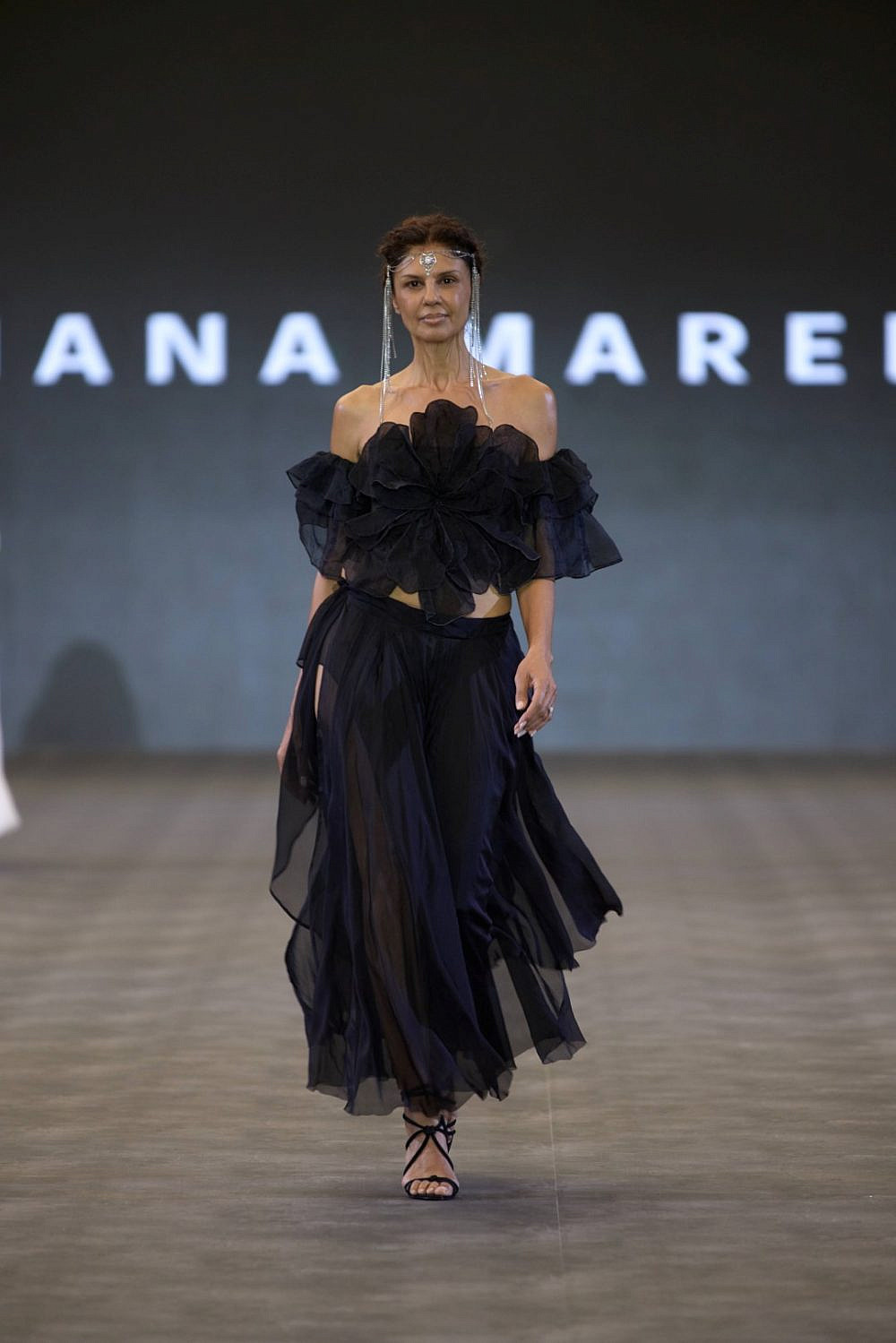 המעצבת חנה מרילוס פתחה את התצוגה בריקוד – מחווה לקולקציה שנוצרה כולה בהשראת תנועה, ושמה במרכז את חומר הגלם: הבד. הקולקציה מדברת על שינוי וזרימה, ומצליחה לשמור על שפה מהודקת ונקייה תוך שילוב של בדים רכים ומחוכים ויקטוריאנים מרשימים. עם גזרות מחמיאות, פלטת גוונים ניטרלית, ודיטיילים ברמת גימור גבוהה, מרילוס מוכיחה שלא צריך להמציא את הגלגל כדי ליצור קולקציה שפשוט עובדת נכון.