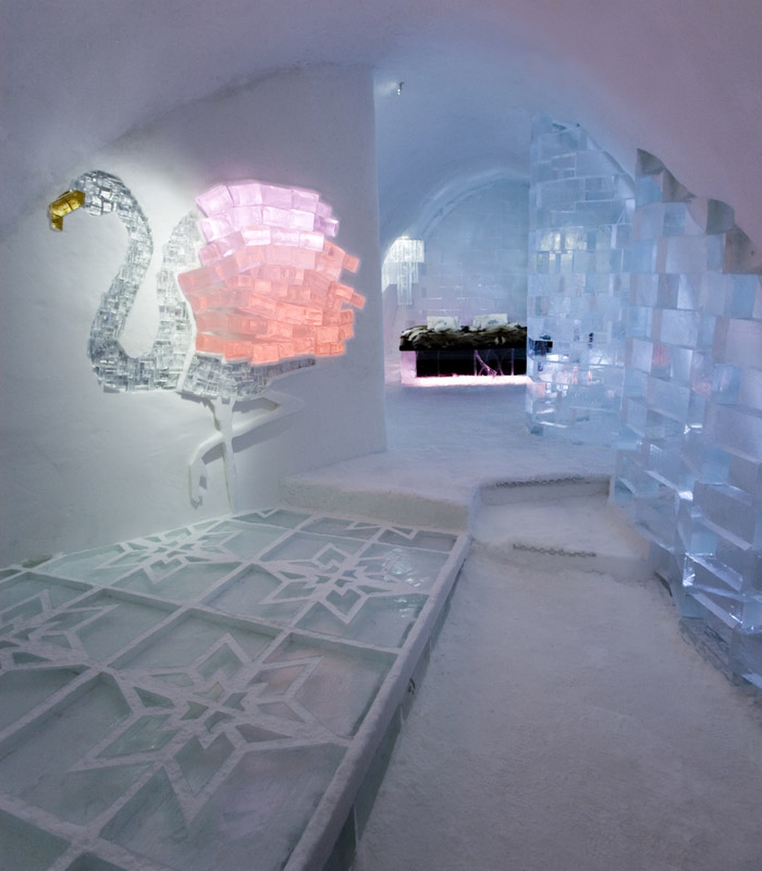 מלון הקרח בשוודיה. מומלץ לשלב לילה אחד של לינה "קרה" עם כמה לילות "חמים". צילום:Photobigben.com. Artist: Marinus Vroom, Marjolein Vonk