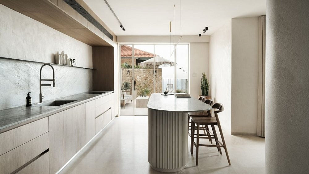 שיש קריר לצד עץ חמים, מתכת קשיחה מול טקסטיל רך – דווקא שילוב בין חומרים מנוגדים הוא זה שמעלה את הערך של כל חומר, מבליט אותו ויוצר עניין בחלל (שירה דרומי, בזלת אדריכלים).
