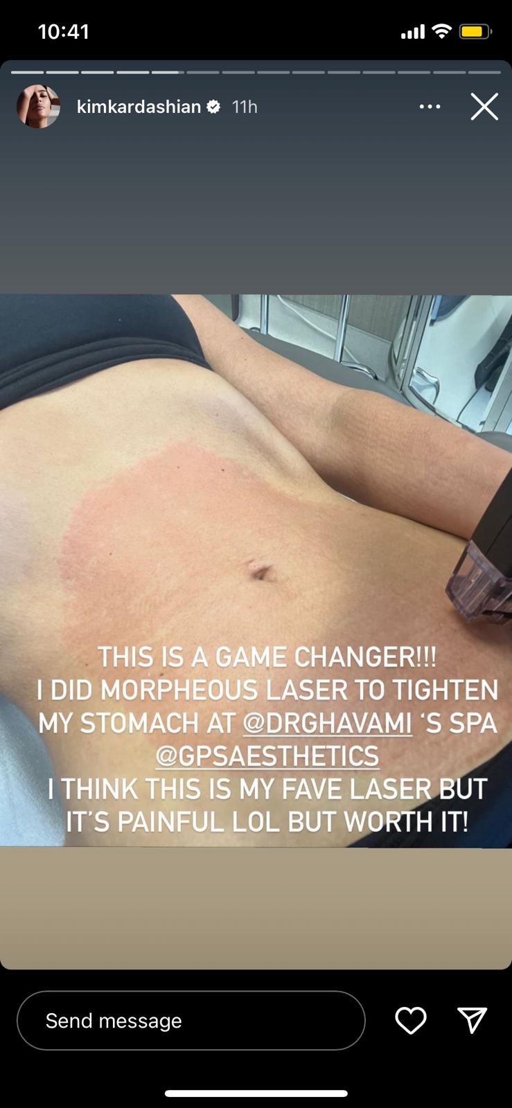 "זה משנה את חוקי המשחק!!! עשיתי מורפיאוס למיצוק הבטן שלי" כתבה קים. "זה הטיפול האהוב עליי – הוא מעט כואב אבל שווה את זה".