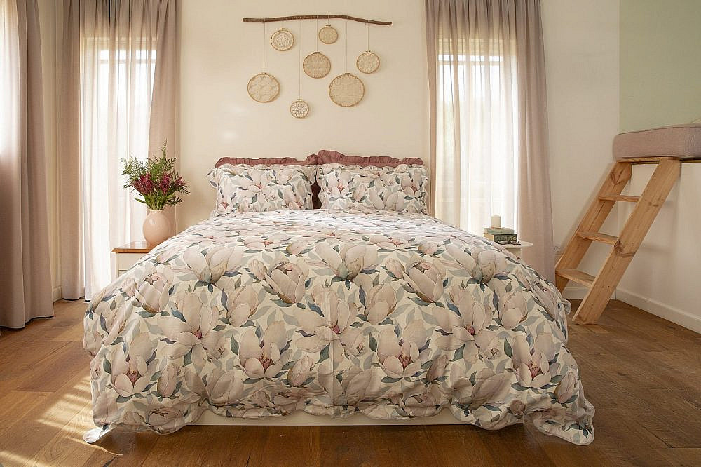 הקולקציה מדברת בשפה עיצובית של Mix&Match. גווני פטל, מנטה וטורקיז לצד לבנים נקיים, טקסטורות עשירות והדפסים בוטניים שמאפשרים לכל אחד לבנות את חדר השינה האישי שלו. מעבר ליופי, יש כאן הצהרה על איכות חיים: סיבי כותנה ארוכים שמאפשרים נשימה טובה יותר, בדים שלא דורשים גיהוץ והקפדה על כל פרט קטן, כולל תשומת לב מיוחדת למארזי הציפיות, מה שהופך אותם למתנה מושלמת.
